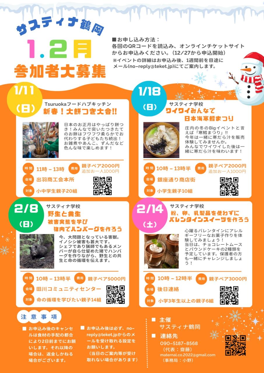 Tsuruokaフードハブキッチン2025年度実りの秋!黄金色の稲刈りと芋煮会2025年9月28日(日)9:00~13:00 開催概要 新米に感謝!『TSURUOKAフードハブキッチン秋稲刈り』の会を開催しましたー&# […]