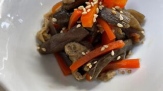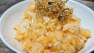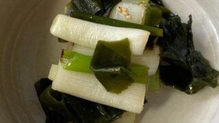 ⑤小松菜は適当な大きさに切ってレンジでチン。もう半分の生姜を千切り。