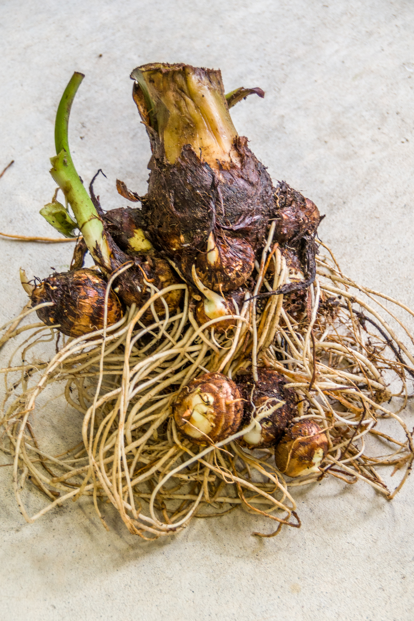 今回は里芋やミニトマトさついま芋を主に生産している栄地区で農家をしているしじぜんファームの英司先生による会! 大雨で生産体験はできなかったものの、早朝に掘り起こしてきた堀りたての里芋を親芋、小芋、孫芋に手で切り離し、根の部分も綺麗に取り除く作業から。