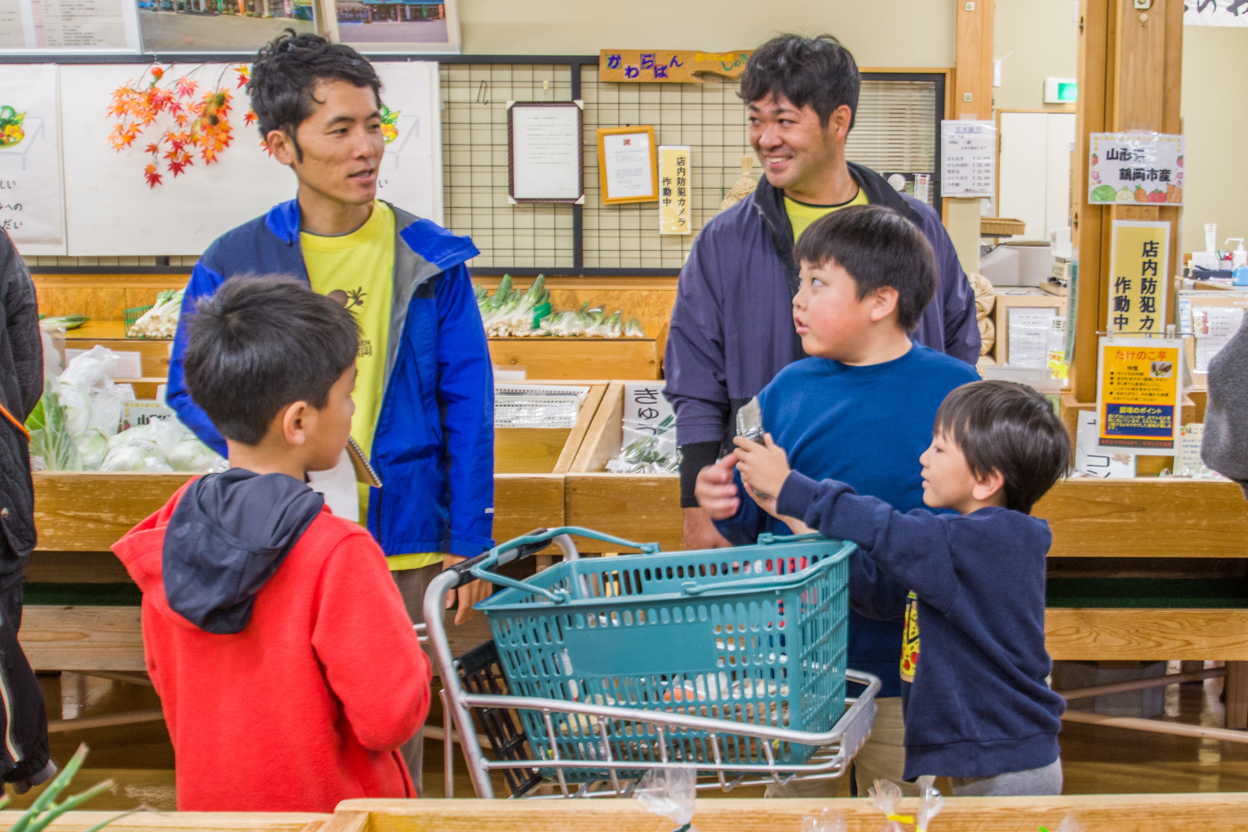 子供たちはしゃきっとさんの店内で事前にプロの料理人が作った芋しし汁を振る舞い体験も行いました。『いらっしゃいませ!』『イノシシのお肉で作った芋煮汁はいかがですか?』『あったまって美味しいよ!』など可愛らしいアナウンスが店内に響き渡りました!