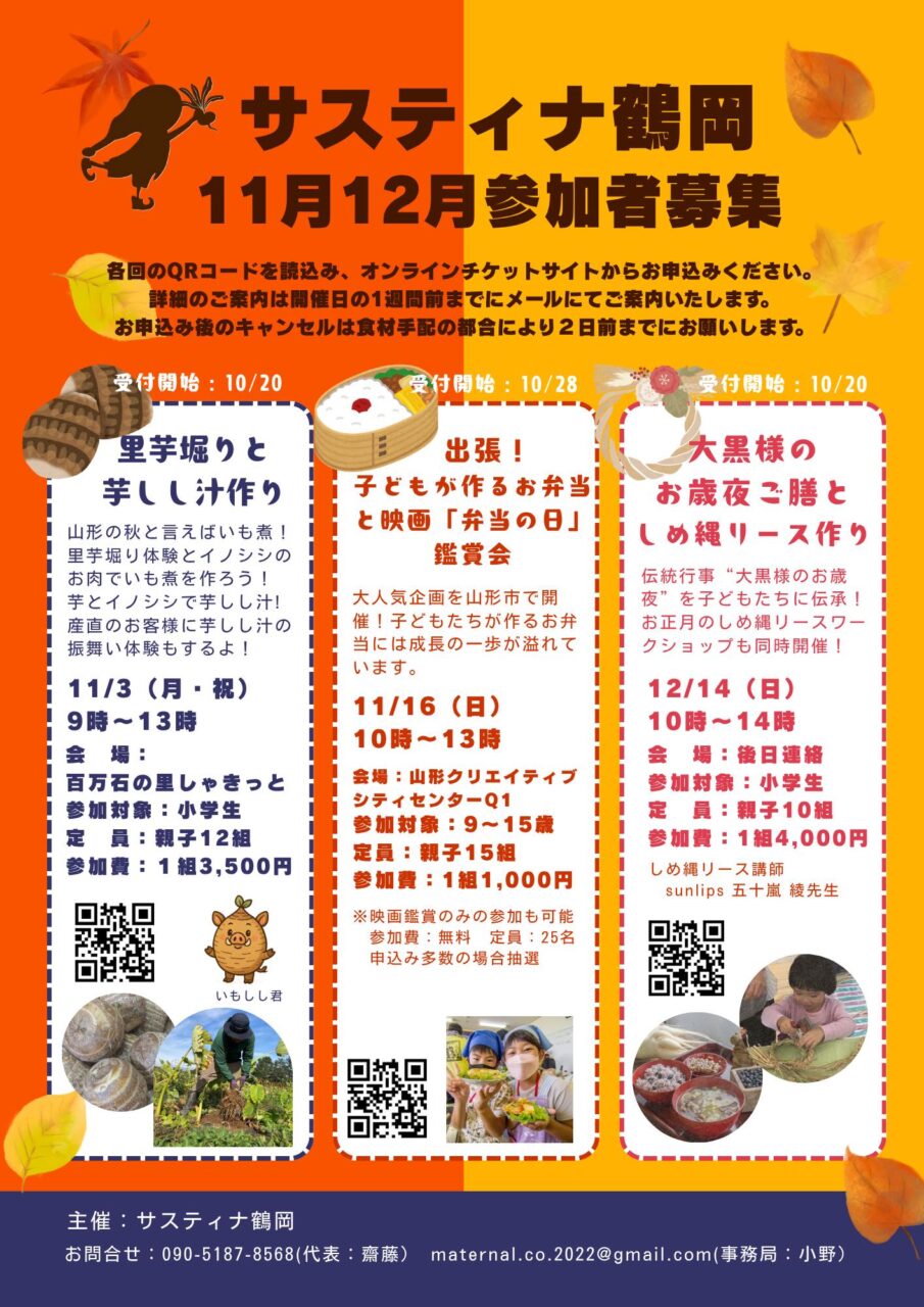 サスティナ鶴岡 2025年11月と12月参加者募集